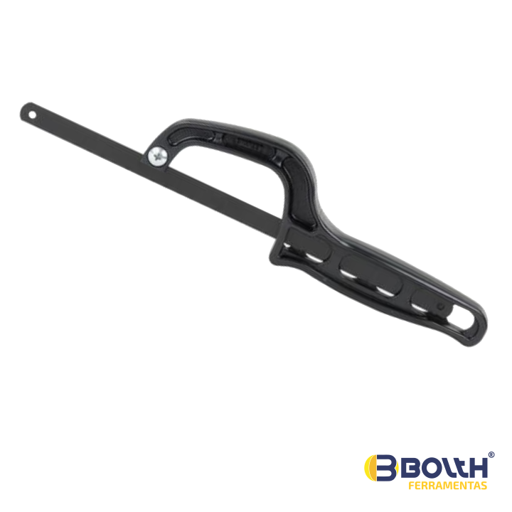 Mini arco de serra, fabricado em plástico reforçado. Cortes rápidos, leves, em todos os tipos de madeiras e metais. Indicado para espaços de difícil acesso. Utiliza lâminas de metal de qualquer comprimento. Ideal para o dia a dia ou para algumas tarefas de artesanato.