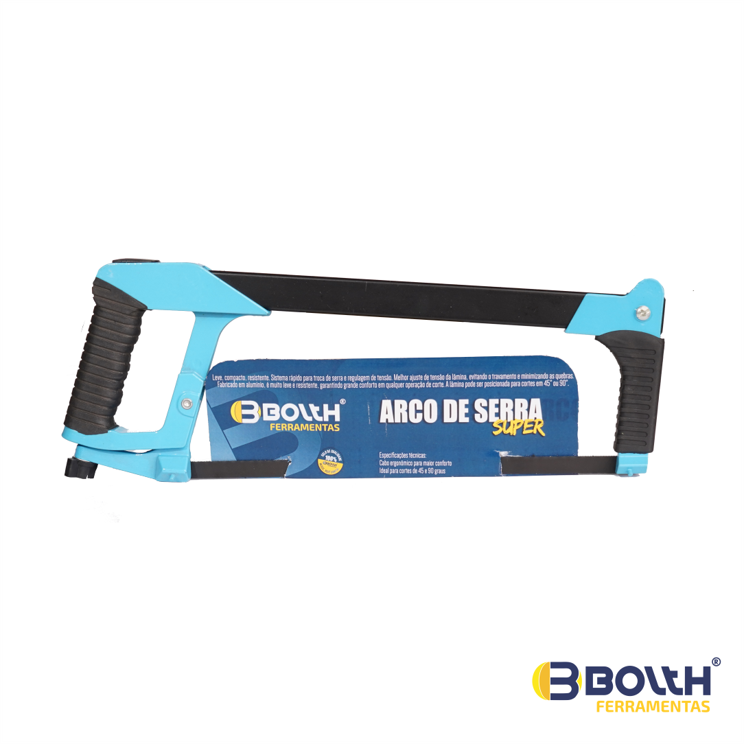 Leve, compacto, resistente. Sistema rápido para troca de serra e regulagem de tensão. Melhor ajuste de tensão da lâmina. Fabricado em alumínio, é muito leve e resistente, garantindo grande conforto em qualquer operação de corte. A lâmina pode ser posicionada para cortes em 45° ou 90°.