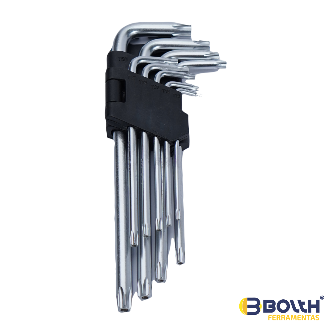 Haste em aço ferramenta S2 temperada. As chaves tipo L possuem dois braços de comprimentos diferentes, e ambas extremidades podem ser utilizadas dependendo do local onde será realizado o trabalho. Ao utilizar o braço mais longo tem-se mais torque, enquanto o braço mais curto promove uma operação mais rápida.