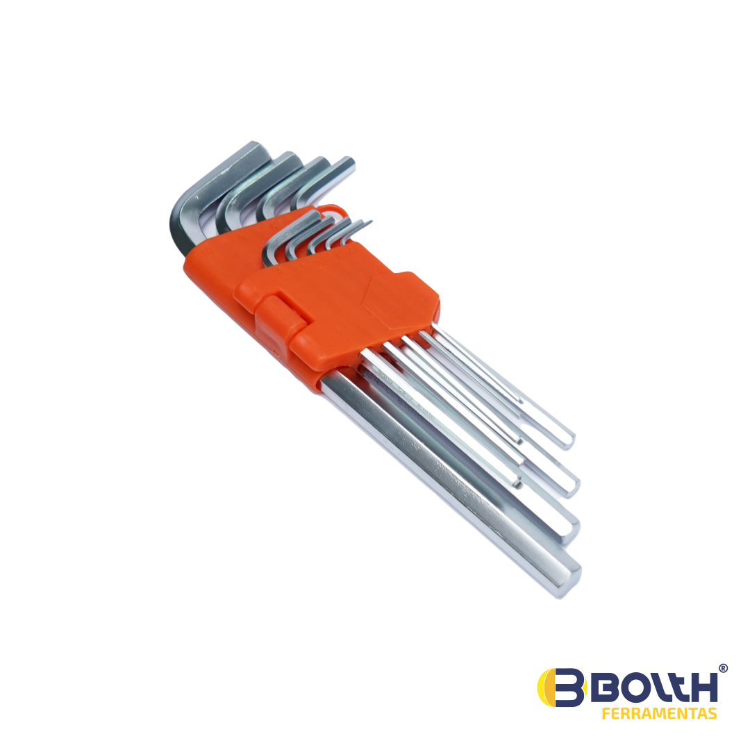 Fabricado em aço cromo vanádio, proporcionando resistência e durabilidade em aplicações mais severas. Oferece proteção contra corrosão. Modelo longo. Acompanha estojo compacto de alta resistência, para organização e armazenamento das ferramentas. Perfil do corpo em “L” o que possibilita o efeito de alavanca durante o aperto ou desaperto de parafusos. - Contém 09 peças.