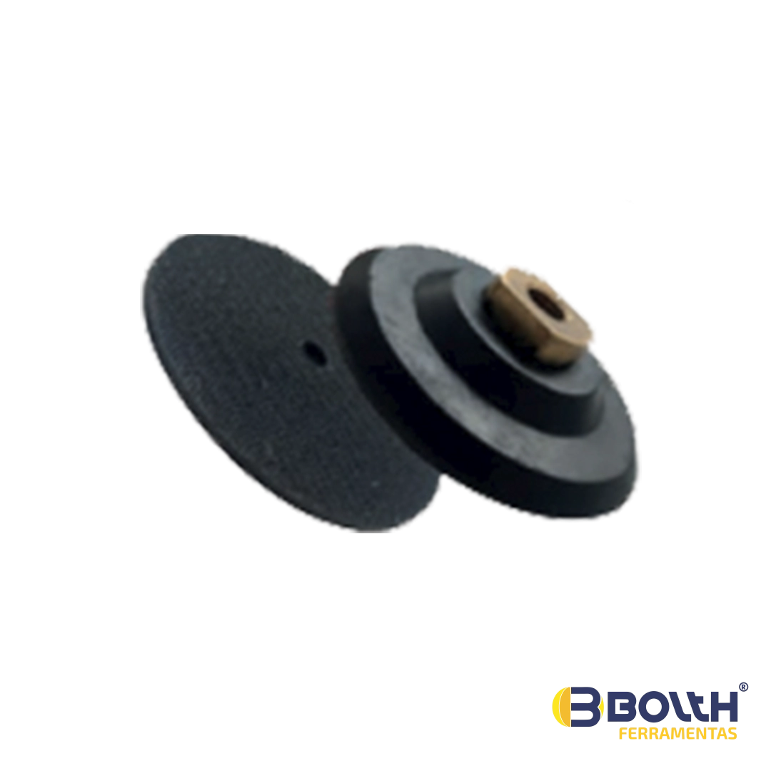 Suporte para o disco de lixa. Indicado para máquinas angulares rotativas de acionamento elétrico ou pneumático. Possui rotação máxima variada de acordo com tamanho da máquina. Confeccionado em borracha, proporcionando flexibilidade e resistência, com arruela metálica no furo central. E em duas medidas 100mm e 180mm; rígido, flexivel ou semi- flexivel. Com ou sem velcro.