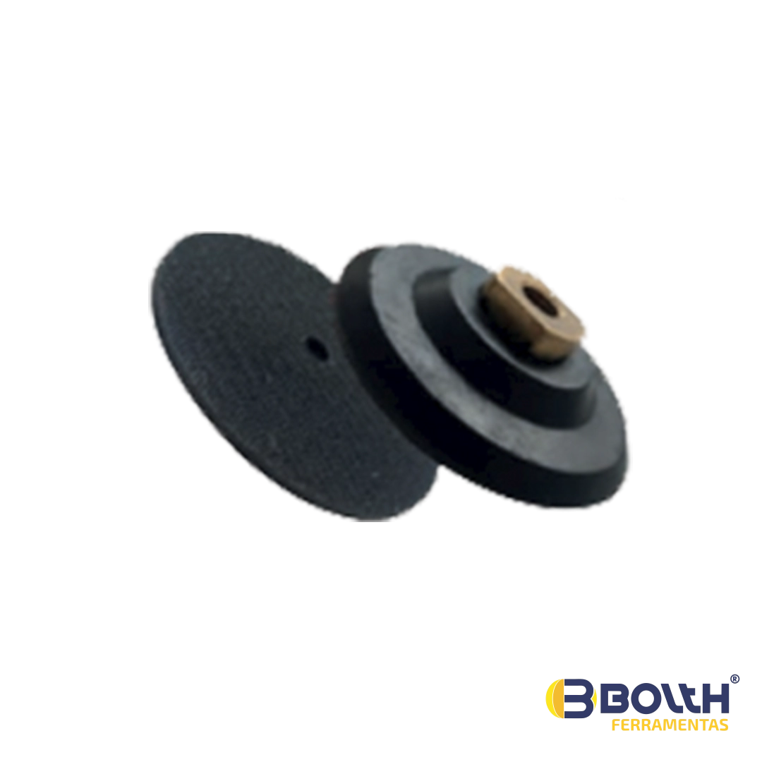 Suporte para o disco de lixa. Indicado para máquinas angulares rotativas de acionamento elétrico ou pneumático. Possui rotação máxima variada de acordo com tamanho da máquina. Confeccionado em borracha, proporcionando flexibilidade e resistência, com arruela metálica no furo central. E em duas medidas 100mm e 180mm; rígido, flexivel ou semi- flexivel. Com ou sem velcro.