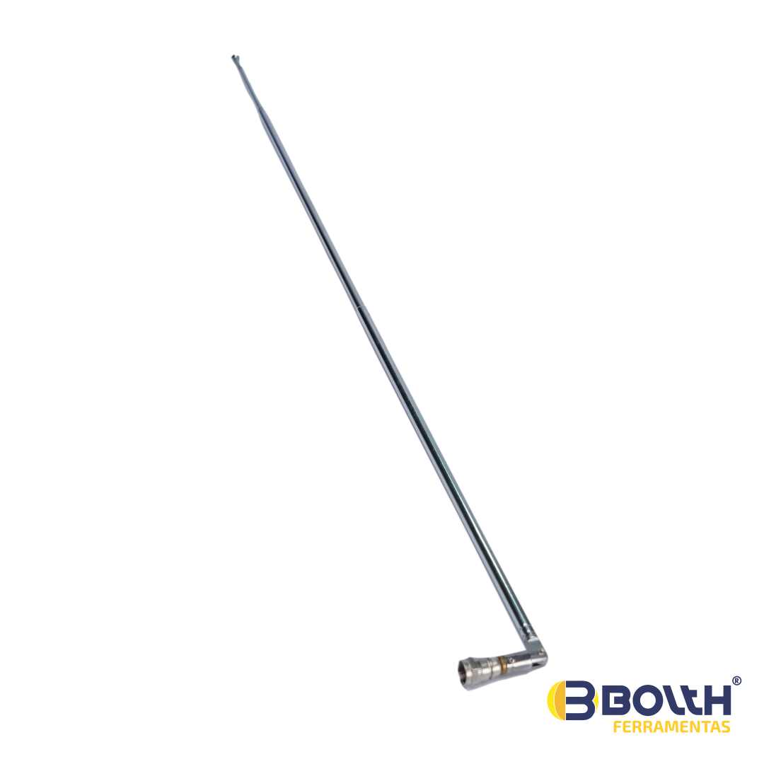 Antena interna tipo haste telescópica com articulação giratória com plug RG-59 de rosca blindado utilizada na recepção de sinais de frequência para sintonia de canais de TV digital e smart TV. Com sua extensa haste de inox revestida com cobre interno proporciona maior gancho de sinal digital.