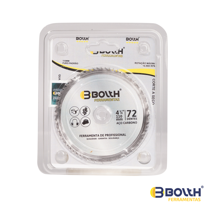 São indicadas para pequenos cortes em madeiras macias de composto aglomerado. Madeirites, compensados e similares. (Atentar para riscos de travamentos). Possui 72 dentes em aço carbono. Corte à seco.