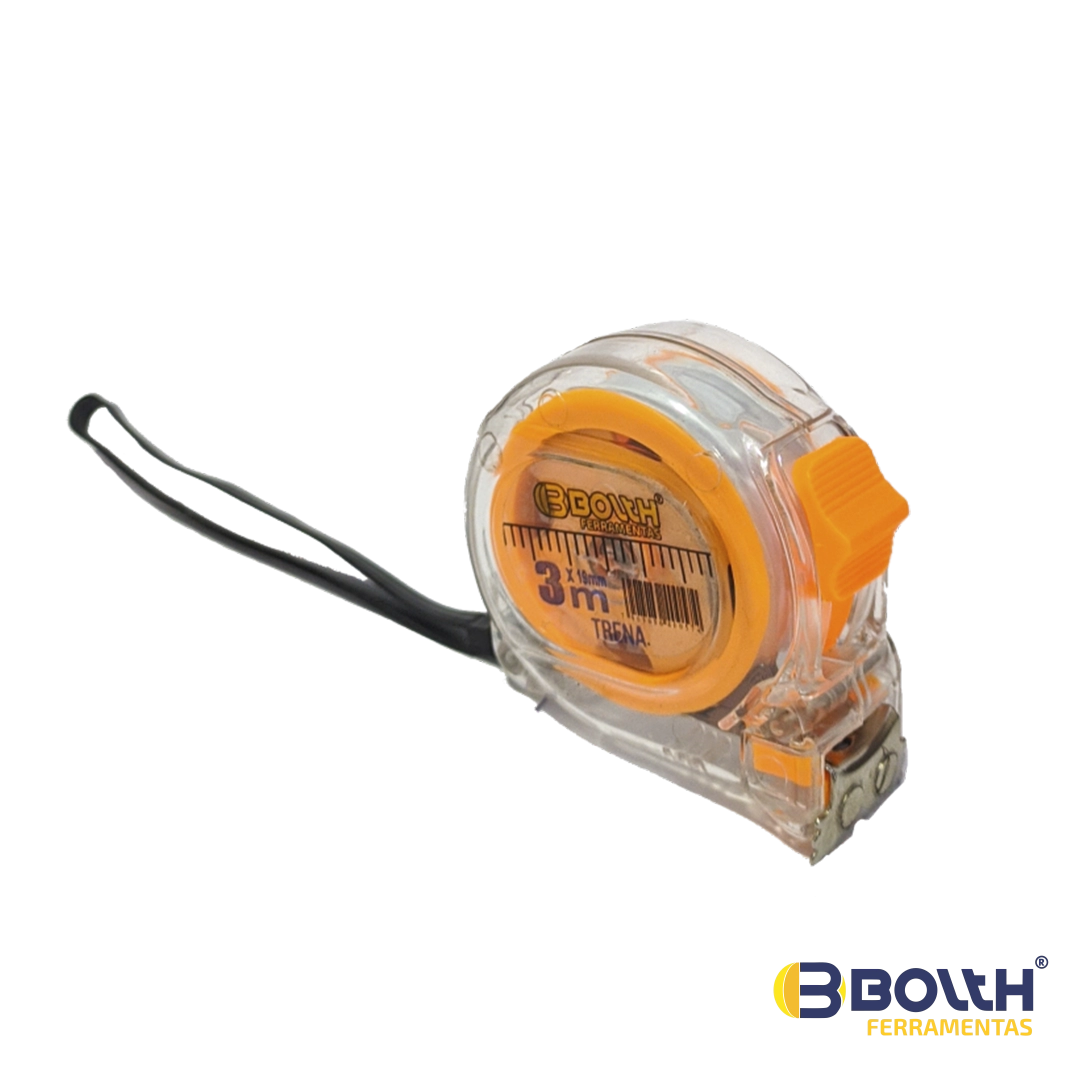 A Trena Transparente BOLTH Ferramentas, possui marcação em centímetros e polegadas, além de ponta magnética com dois imãs, o que facilita a precisão das suas medições. Possui alta resistência e durabilidade. 3m x 19mm.