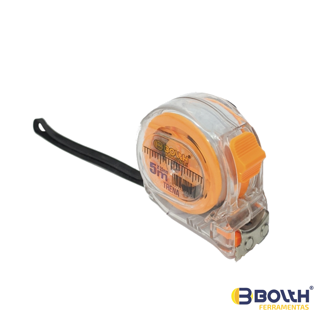 A Trena Transparente BOLTH Ferramentas, possui marcação em centímetros e polegadas, além de ponta magnética com dois imãs, o que facilita a precisão das suas medições. Possui alta resistência e durabilidade. 5m x 25mm.