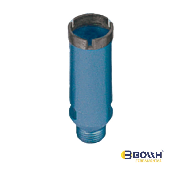 Brocas tubulares, fabricadas para furação de boca de pias, torneiras, ralos e outros serviços. Possuem diâmetros que variam de 8mm até 120mm. Feitas em Aço escovado, rosca padrão de 1/2''. Camada de furo de 8mm soldadas com fio prata para maior resistência.