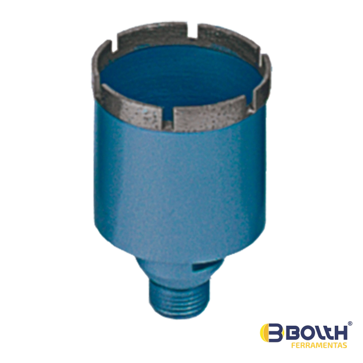 Brocas tubulares, fabricadas para furação de boca de pias, torneiras, ralos e outros serviços. Possuem diâmetros que variam de 8mm até 120mm. Feitas em Aço escovado, rosca padrão de 1/2''. Camada de furo de 8mm soldadas com fio prata para maior resistência.