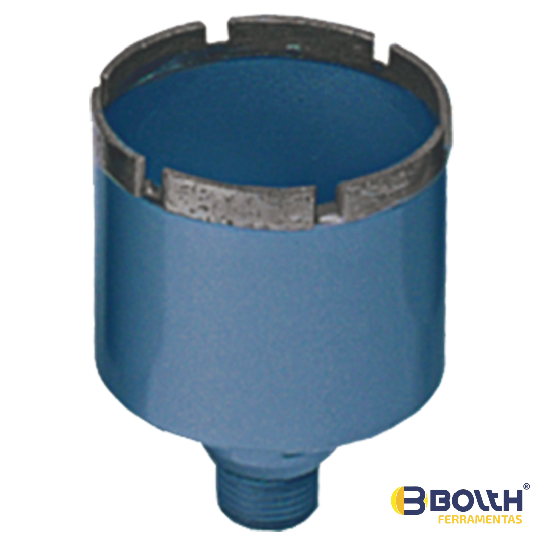 Brocas tubulares, fabricadas para furação de boca de pias, torneiras, ralos e outros serviços. Possuem diâmetros que variam de 8mm até 120mm. Feitas em Aço escovado, rosca padrão de 1/2''. Camada de furo de 8mm soldadas com fio prata para maior resistência.